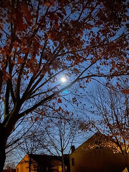 媽媽曾經說過,她看著月亮就會想媽媽。從那時候開始,我看到月亮,也會想媽媽。昨天睡眠質量不佳,但是半夢半醒間還是做了夢,夢裡面我終於回到台灣,跟媽媽嘰嘰喳喳的講話。媽媽和以前一樣,講話又快又急,思路清晰,有條有理。在夢裡我高興的抱著媽媽、激動的說,媽媽你病好了、你都好了。醒了,天還是黑的,我忍不住流淚。